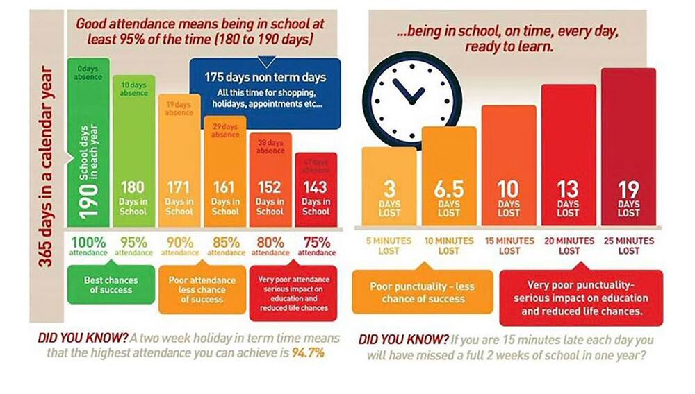 Registration closes at 9.20 am and 1.25 pm. Any pupil who arrives after registration closes will count as absent (authorised), before this, we will use a ‘late’ code to show the pupil was late to registration. Being late to school has serious impact on pupils' ability to settle and to feel part of their class and school community.