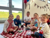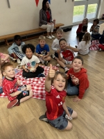 Today, our school came together to celebrate the 80th Anniversary of VE Day, filled with joy, reflection, and remembrance. Dressed in vibrant red, white, and blue, pupils embraced the spirit of Victory in Europe by participating a picnic-style street party, eating a sweet treat and learning to dance the Lindy Hop just as people did during the wartime era echoing the celebratory spirit of 1945. In addition pupils have delved into primary sources, gaining an authentic glimpse into history. Pupils also came together to perform "I'll Remember," a heartfelt song composed by Simon Haw MBE, paying tribute to those who fought for peace.