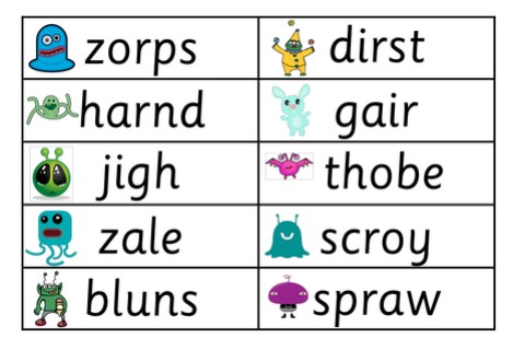 When your child begins to become confident in segmenting and blending activities in Year 1, they will be introduced to alien words in their phonics lessons. This is because in Year 1 all children take a Phonics Screen Check in June, which requires the children to read real and alien words. Alien words are not real words and they will only learn to decode and read these words.