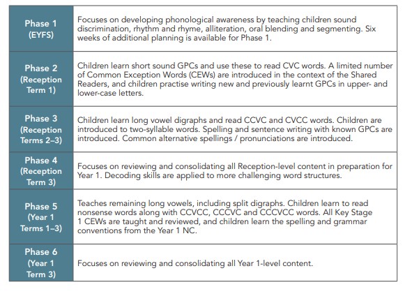 The scope and sequence on the chart below is a guide to what your child will be learning at each phase and Term at Newcroft. Progression is built in throughout the programme with an increase in the level of challenge in the skills taught at each phase: